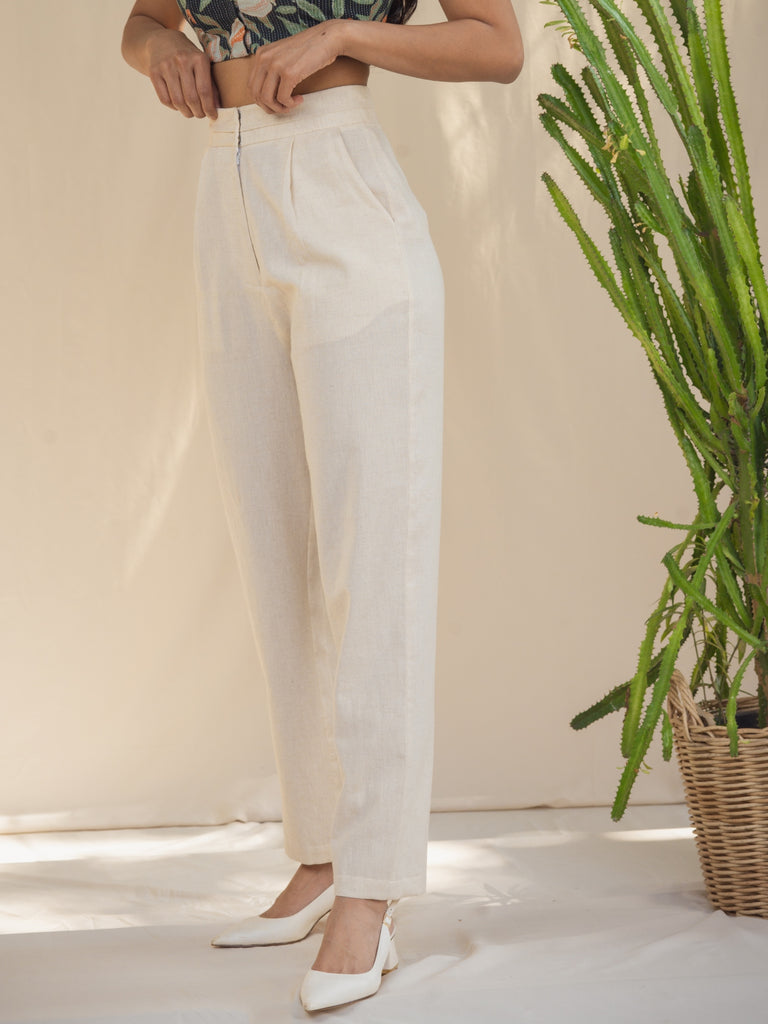 Our Amina Pant Set, Crafted in a soft and breathable cotton fabric with azo-free dyes, the set includes a stunning floral printed crop top with a front opening and a pair of beige double belted trousers with a relaxed fit. The crop top is designed to keep you cool and comfortable, while the stylish print adds a touch of elegance to the overall look. The double belted trousers feature a relaxed fit that offers a comfortable and flattering silhouette, making them perfect for any occasion.