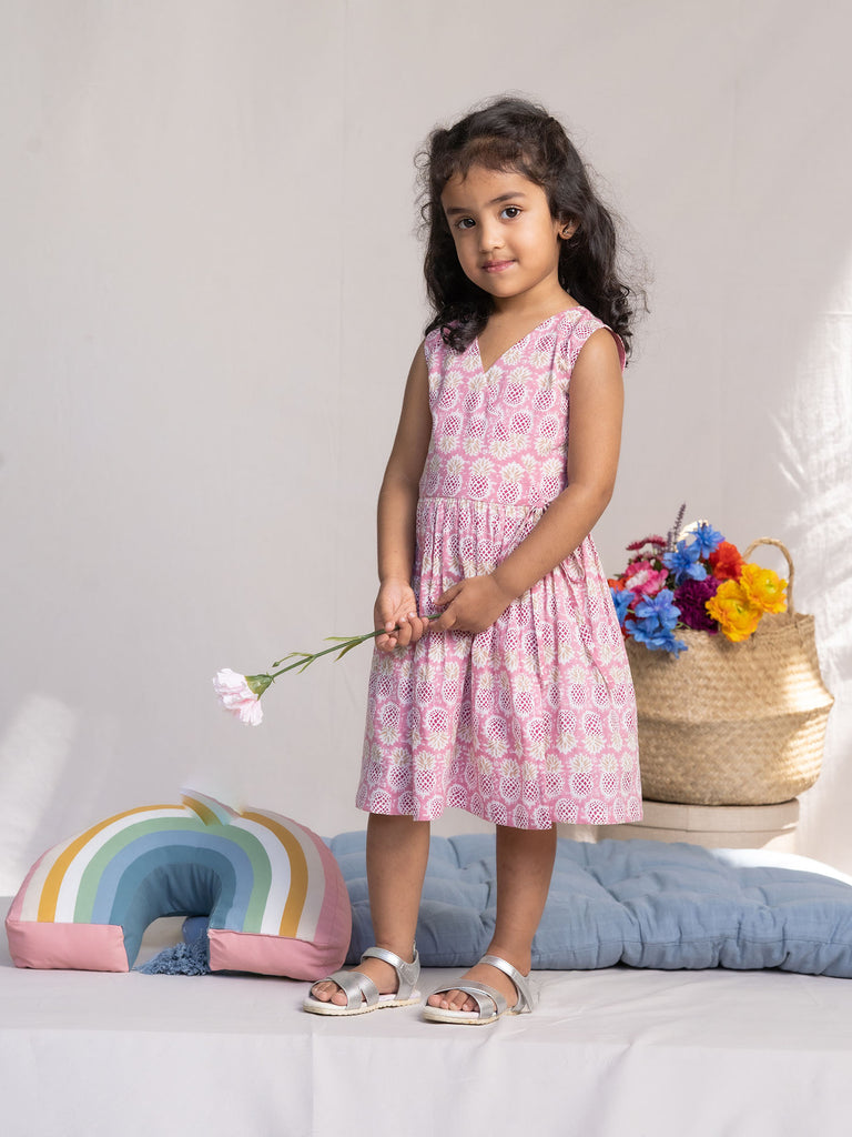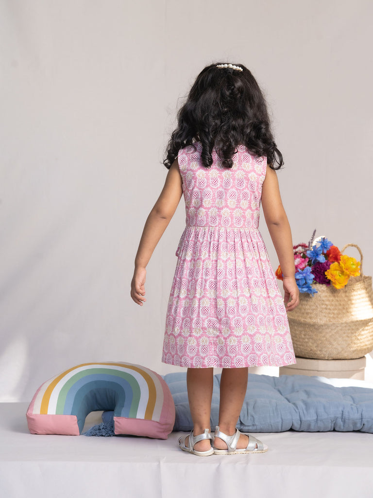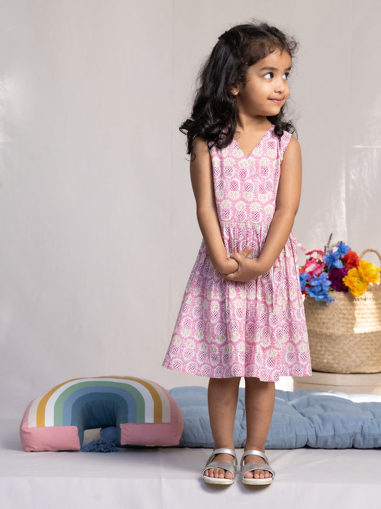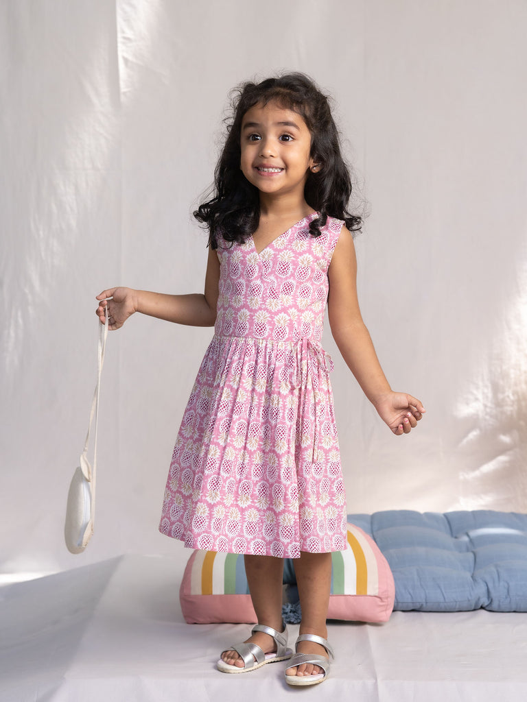 This dress right here makes any little girls day brighter, crafted in a soft organic cotton block printed fabric with the cutest pineapple motifs, this wrap style dress is the complete look you’ve been looking for.