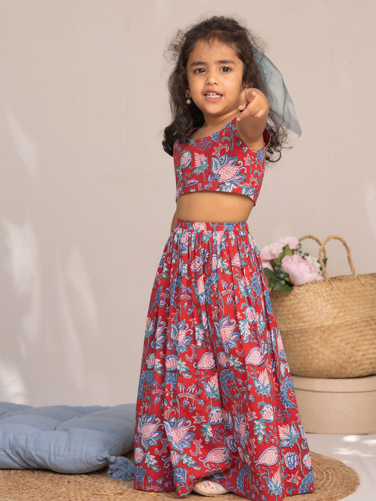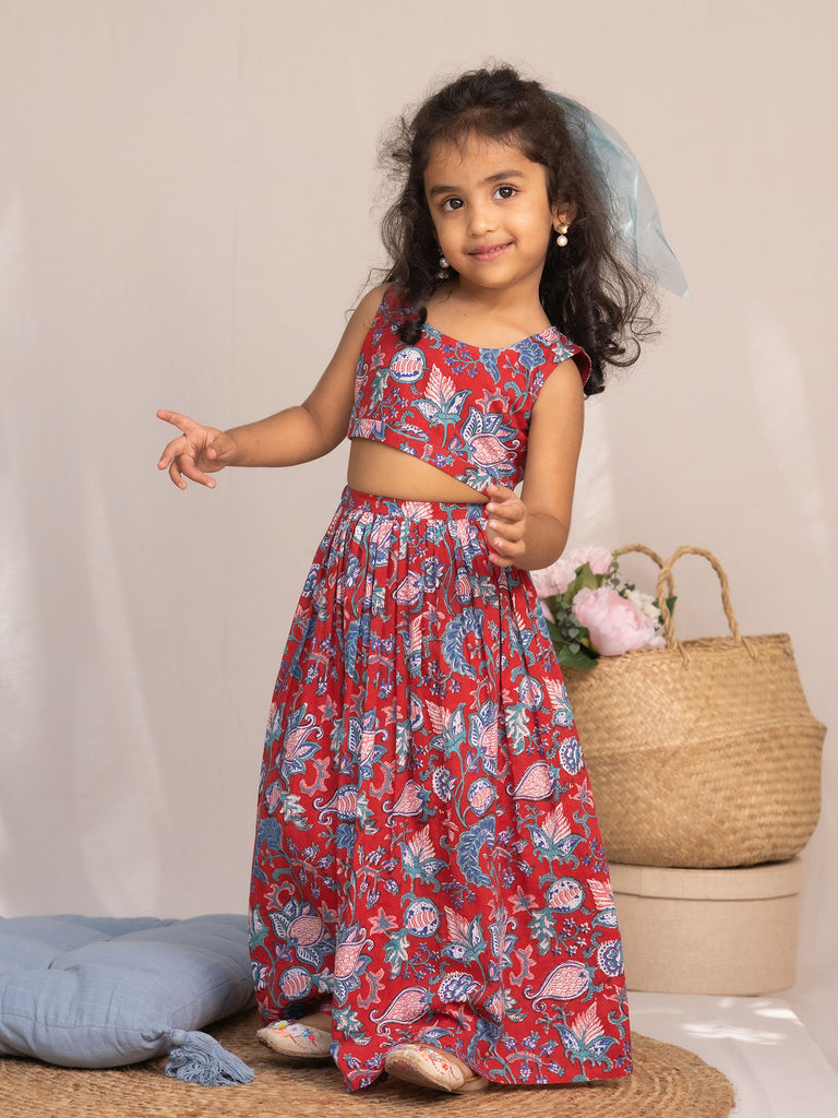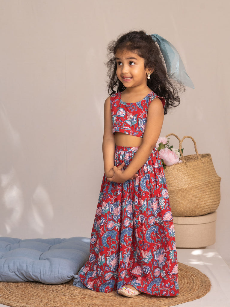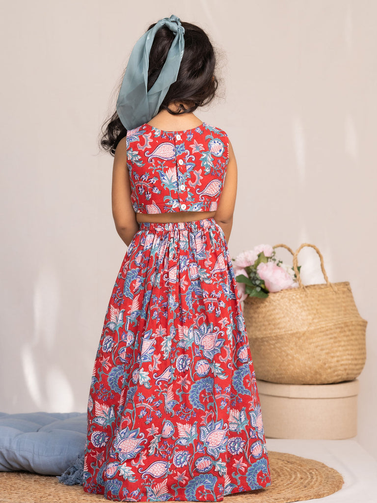 Add more color to your kids wardrobe by adding this stunning matching skirt set. The Set features a round neck sleeveless crop top with a back button closure paired with a matching skirt with an elasticated back for a comfortable fit.
