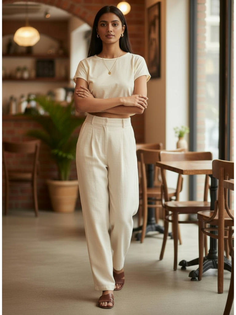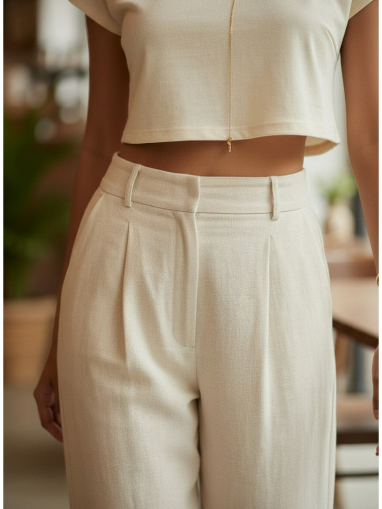 Elevate your everyday style with the classic and sophisticated Paige Pants. These beige cotton linen pants offer a comfortable and breathable fit, making them the perfect choice for daily wear. The pleated waist belt adds a touch of detail, while the classic design makes them versatile and timeless. Whether you're headed to the office, out for a casual day with friends, or running errands, the Paige Pants will have you looking and feeling your best.