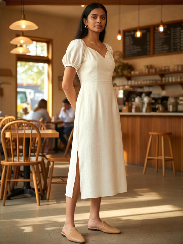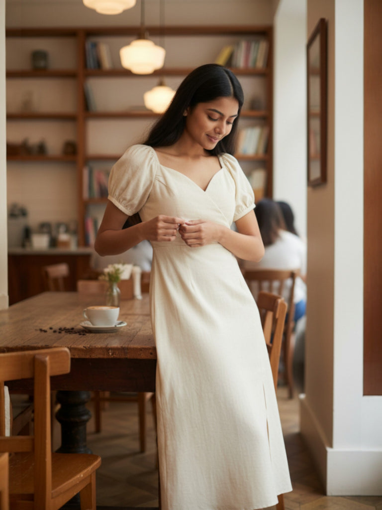 Introducing the Rumi Dress,this stunning piece features a wrap style neckline that highlights your natural curves and a blend of cotton and linen fabrics that offers a comfortable and breathable fit. The slits on both sides of the dress add a touch of playfulness to this otherwise sophisticated dress.