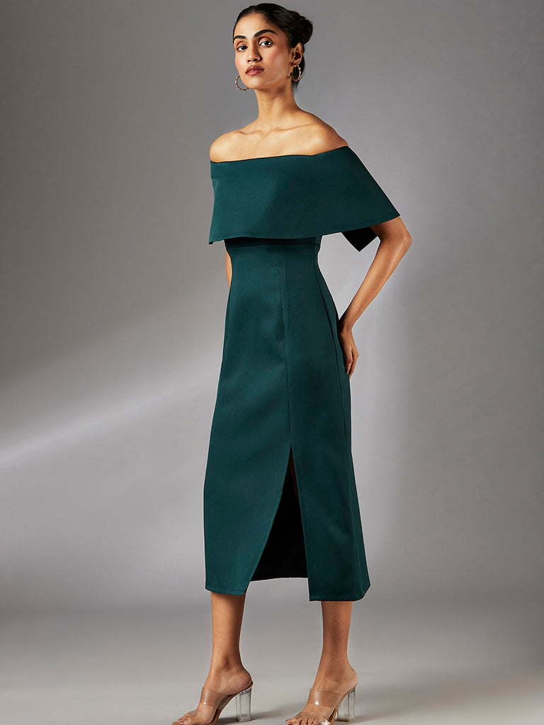 Make a statement and turn heads in the Ivy Off-Shoulder Midi Dress. Crafted from luxurious Italian banana crepe, this dress exudes sophistication and sensuality. The elegant off-shoulder neckline and midi length create a glamorous silhouette, while the front slit adds a touch of intrigue and allows for easy movement. Perfect for date nights, ladies' nights, and any special occasion where you want to feel confident and stylish.