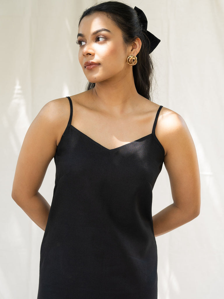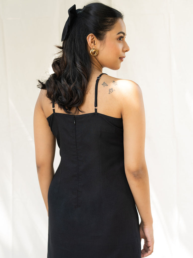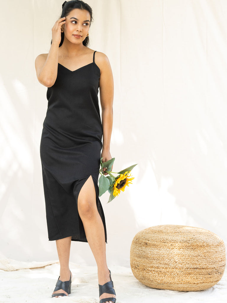 Keira is every girl’s need, timeless and classy. A basic black cotton slip dress with a side slit and zip closure that can be thrown on for any occasion. Can easily be styled with a pair of shoes, boots or heels to add that extra flair.