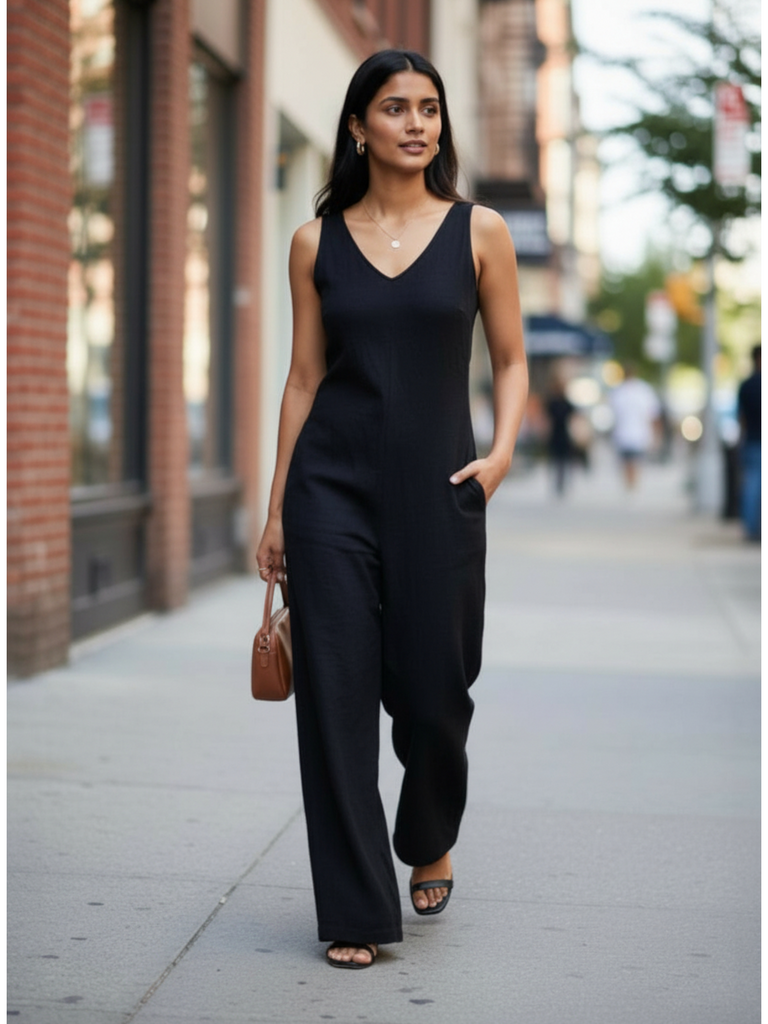 Elevate your wardrobe with the Lexi Jumpsuit, a chic and stylish one-piece that is perfect for any occasion. The V neckline adds a touch of sophistication, while the pockets make it both functional and comfortable. The back zip ensures a secure and snug fit, making the Lexi Jumpsuit the perfect choice for a busy day or a night out. The handwoven cotton fabric is both durable and sustainable, making it a great choice for the eco-conscious fashionista.