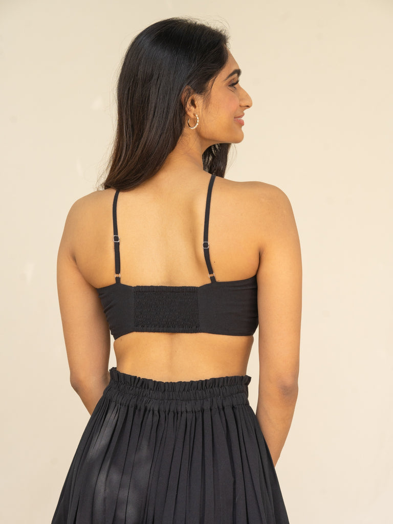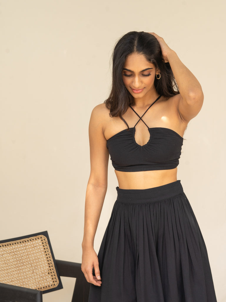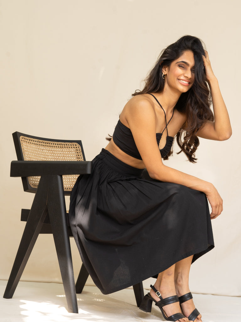 Make a statement with the stunning Kate Set, the perfect choice for any night out or evening occasion. This cross neck crop top features smocking in the back, creating a comfortable and flattering fit that's sure to turn heads. The matching ruffle skirt, with pockets, is both stylish and versatile, making it the perfect choice for any occasion. The handwoven fabric, in classic black, is both durable and comfortable, ensuring that this set will last and look great for many wears to come.