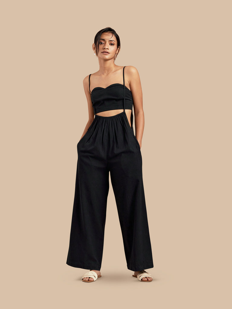 Keep your look simple and effortless with a classic dungree paired with a matching bustier top crafted in a handwoven cotton fabric. Minimal & effortless style. A classic overall style dungree paired with a matching bustier top, crafted in a handwoven fabric and brings together everything you love about pajamas—comfort and style. Wear this everyday