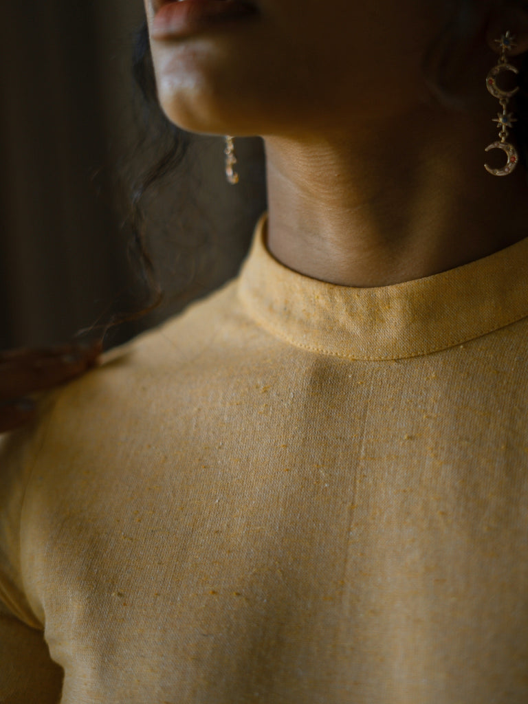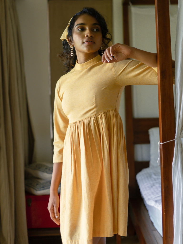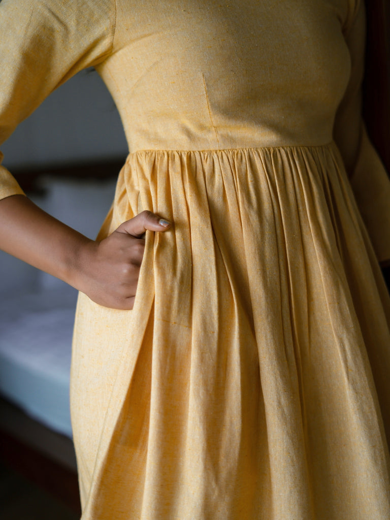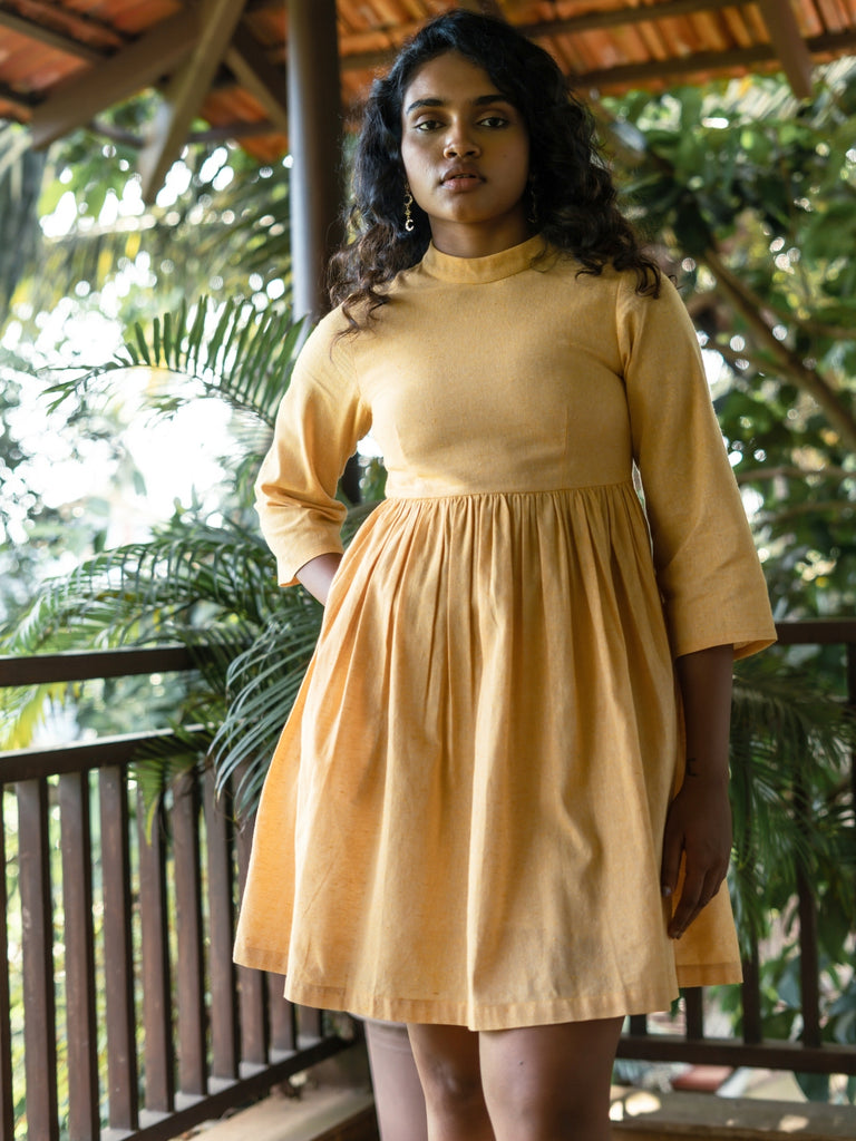 Meet the Fiona Dress, a burst of vintage charm with a modern twist. This Yellow Chinese Collar Dress effortlessly combines nostalgia with a playful spirit, featuring convenient pockets and stylish 3/4th sleeves. Whether you're twirling at a garden party or exploring the city, Fiona is your go-to choice for a day filled with delightful surprises. Who says you can't have pockets in your retro dream?