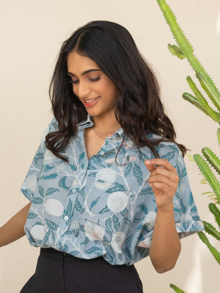 Introducing our stunning Kantha boxy gender neutral shirt, crafted in a beautiful floral print that is sure to turn heads. Made from high-quality cotton fabric, this shirt features short dolman sleeves for a comfortable fit. The unique Kantha style stitches add an extra touch of detail to this already gorgeous piece. Perfect for any occasion, this shirt is a must-have addition to your wardrobe. Versatile for both Men & Women.