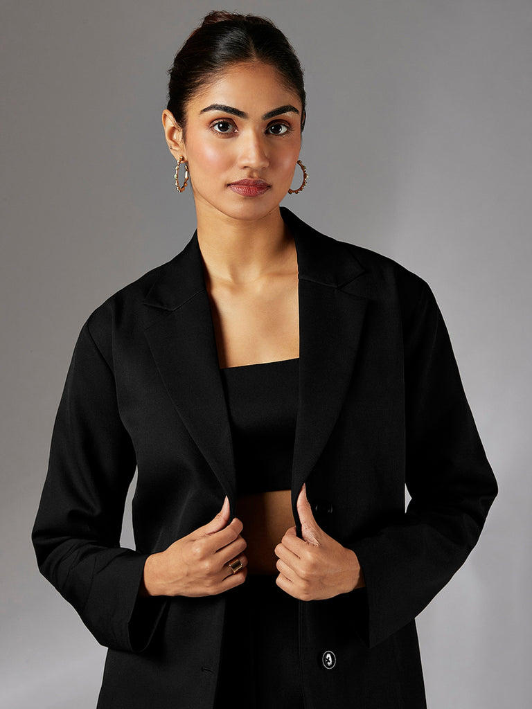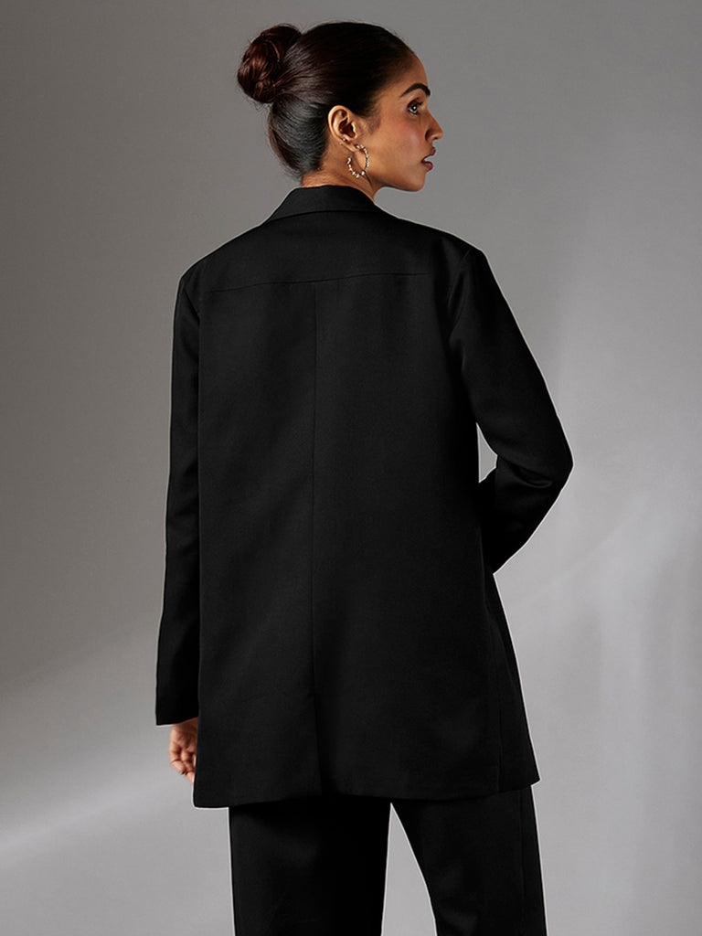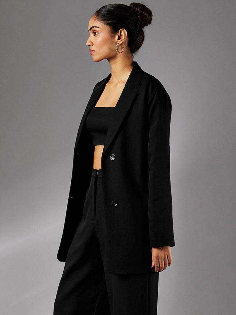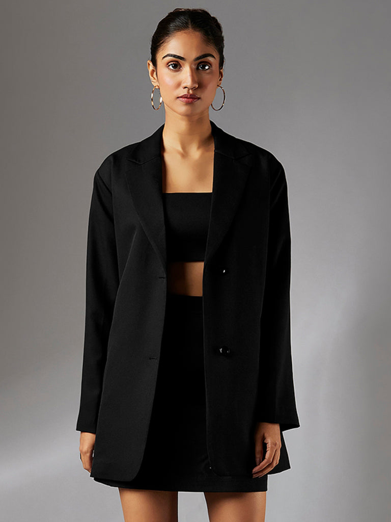 The Lux Edit: The Ramona Oversized Blazer is a versatile and effortlessly chic piece that exudes modern sophistication. Crafted from luxurious Italian banana crepe, this blazer offers both comfort and style. Its flattering oversized fit strikes the perfect balance between relaxed and refined, making it suitable for a variety of occasions. The standout detail is the vintage black coat buttons adorned with a unique streak, adding a touch of personality and individuality.