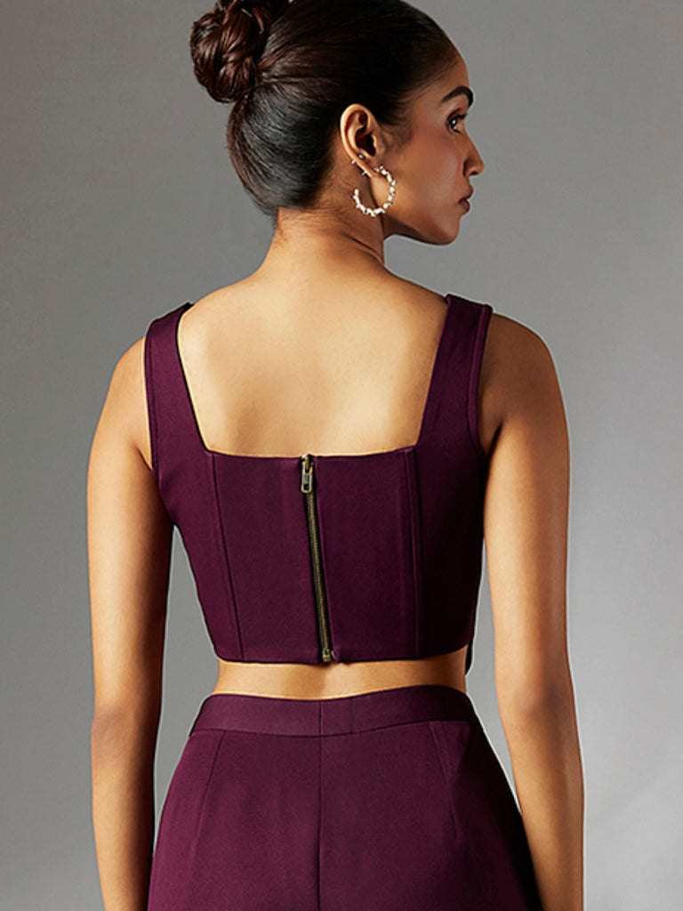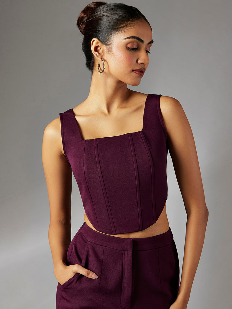The Lux Edit: Indulge in a touch of alluring elegance with this plum corset top. Crafted with a structured design and intricate detailing, this piece offers a flattering silhouette and a hint of vintage glamour. The rich plum hue adds a touch of sophistication, making it a standout in your wardrobe. Pair it with a high-waisted skirt or tailored trousers for a chic and confident look. The plum corset top is perfect for making a bold statement and embracing your inner confidence.
