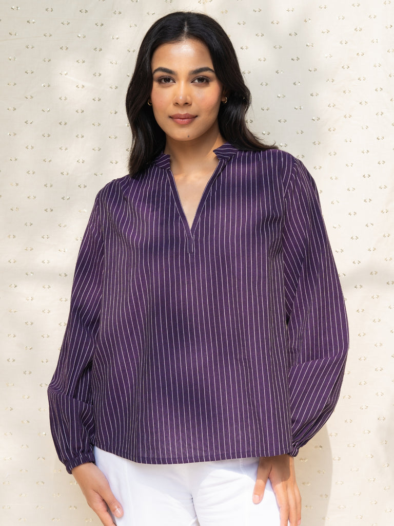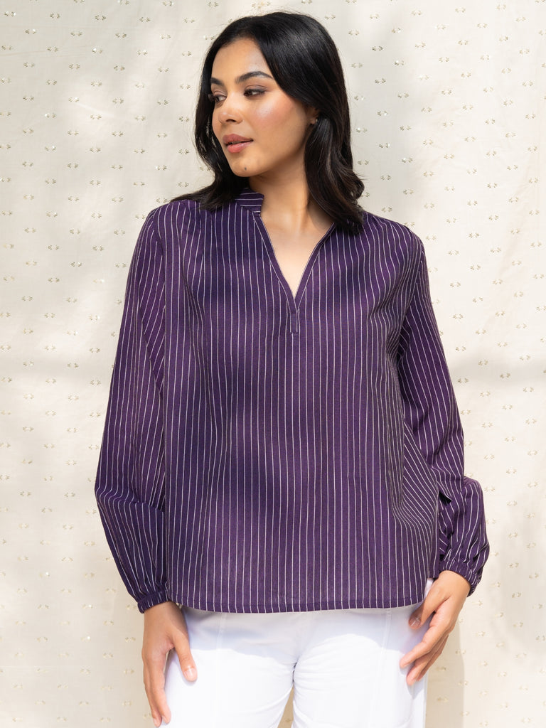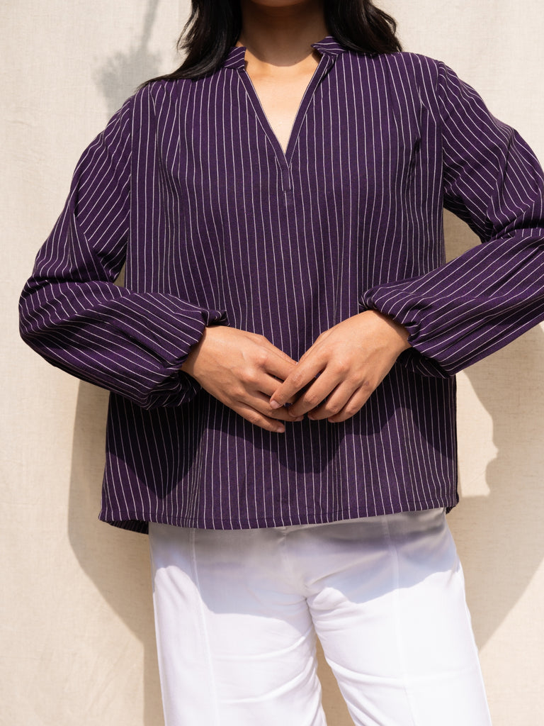 The Fes Stripe Top: Effortless elegance in handwoven cotton. This delicate V-neck top is the perfect addition to your wardrobe. Easy to wear and pair with any bottoms, it's a timeless classic you'll reach for again and again.